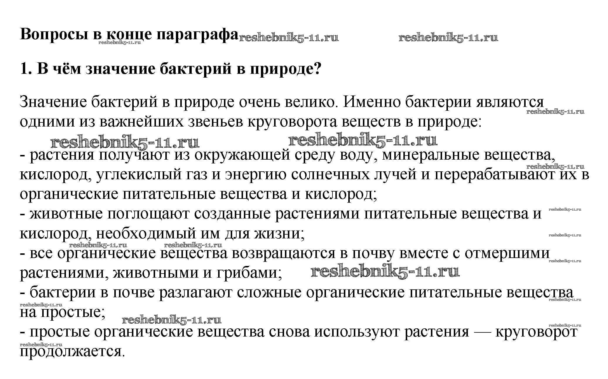Биология за 5 класс Пасечник Учебник УМК Дрофа вопрос в конце параграфа 1