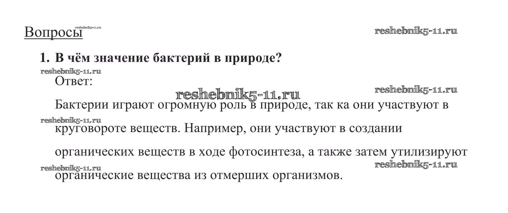 Готовая домашняя работа с ответами по Биологии за 5 класс Пасечник Учебник УМК Дрофа 2016 ФГОС - Вопросы в конце параграфа 1