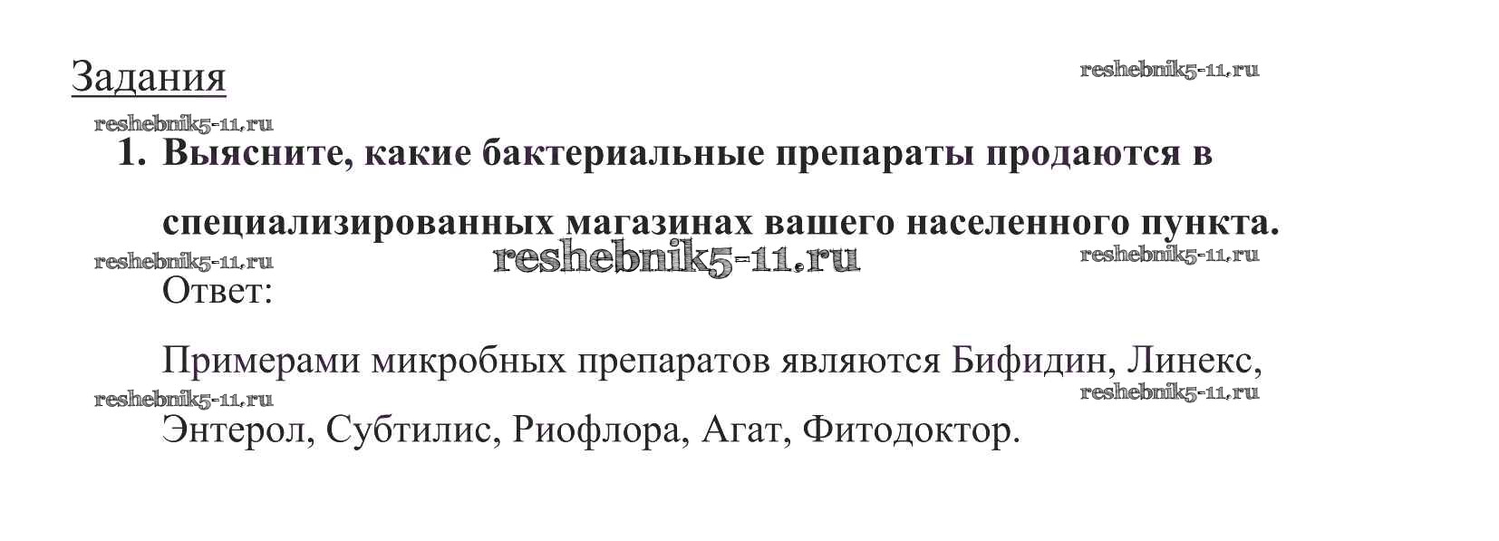 Готовая домашняя работа с ответами по Биологии за 5 класс Пасечник Учебник УМК Дрофа 2016 ФГОС - Задания 1