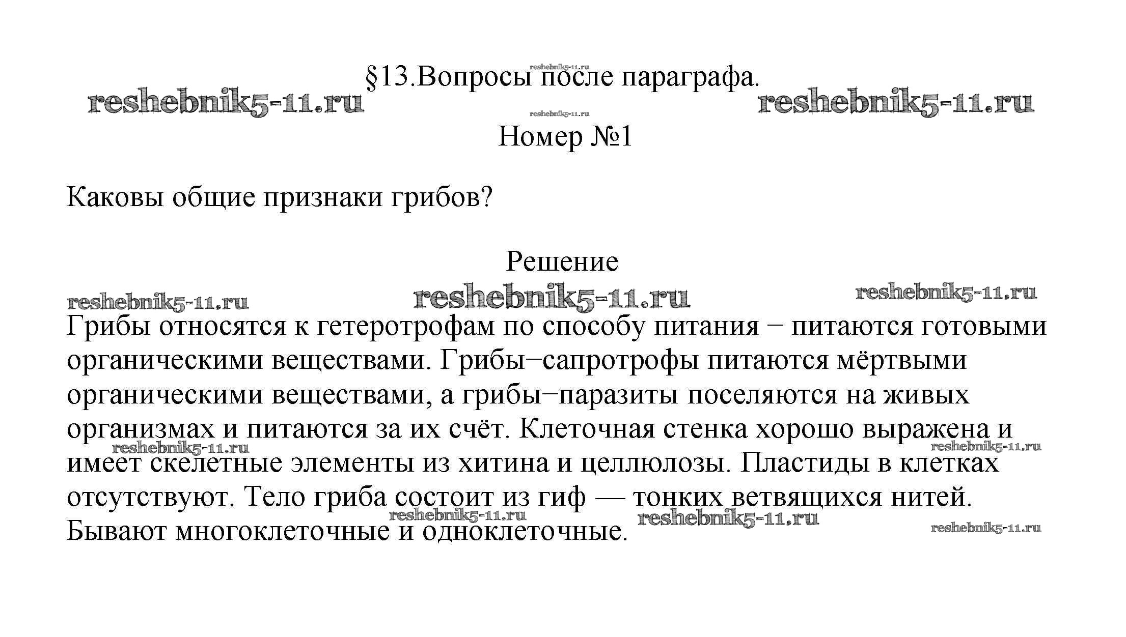 Биология за 5 класс Пасечник Учебник УМК Дрофа вопрос в конце параграфа 1