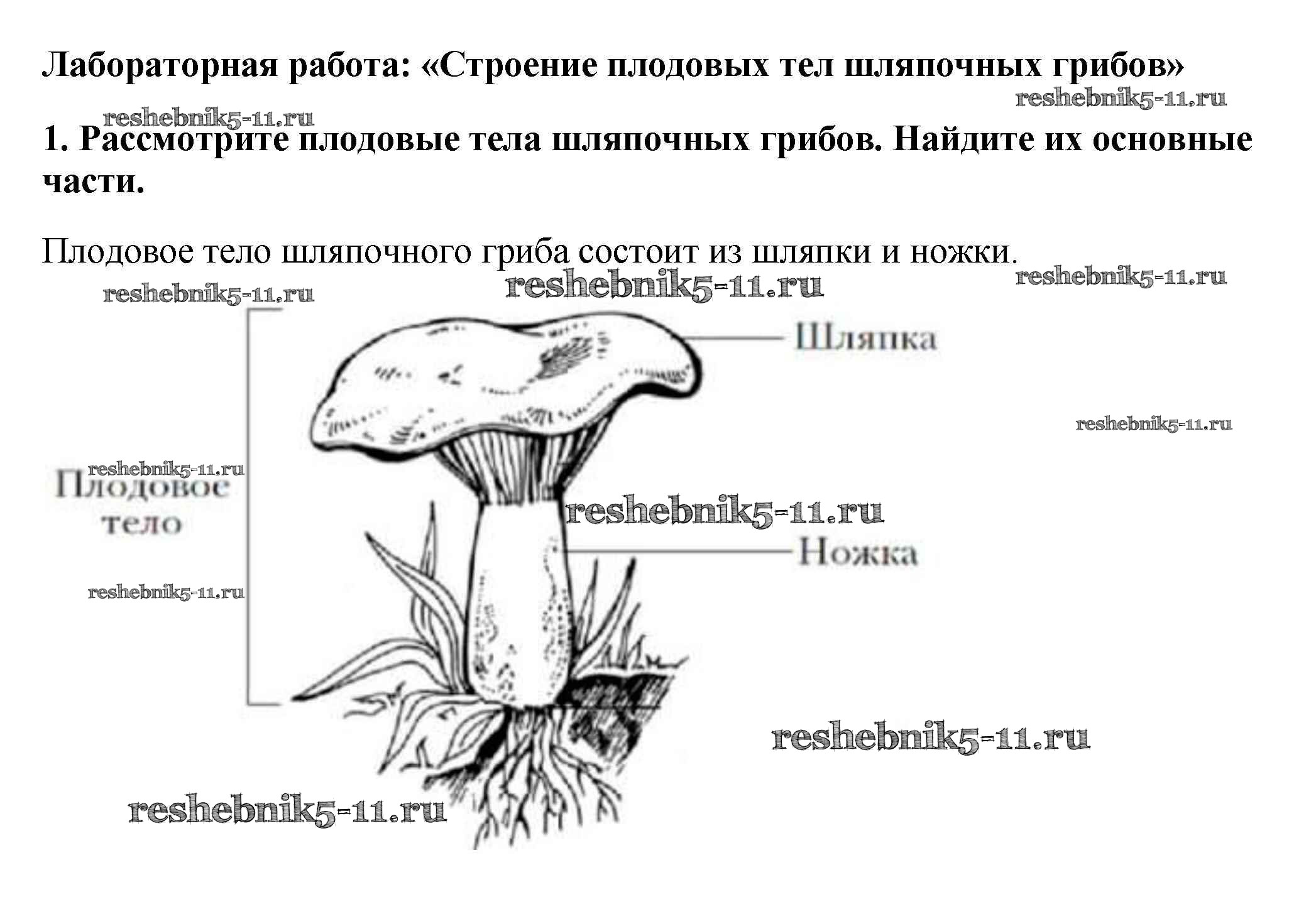 Решебник №3 / §14 / строение плодовых тел шляпочных грибов / 1