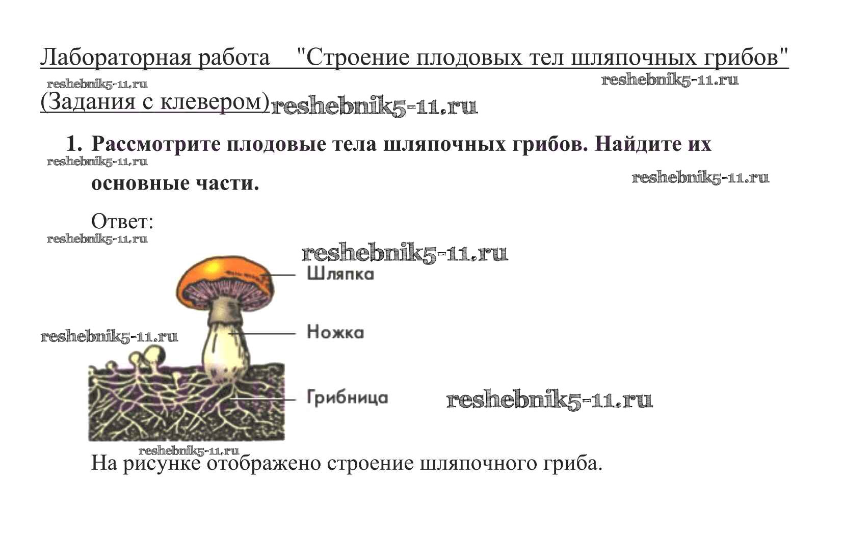 Решебник №1 / §14 / строение плодовых тел шляпочных грибов / 1