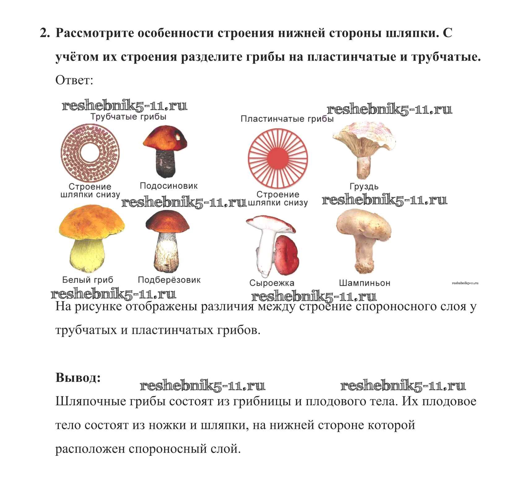 Решебник №1 / §14 / строение плодовых тел шляпочных грибов / 2