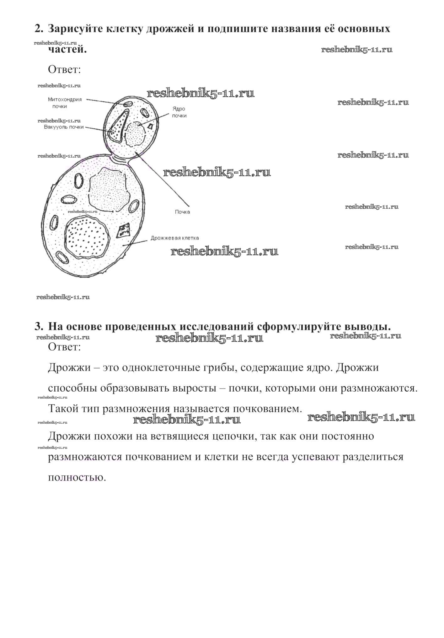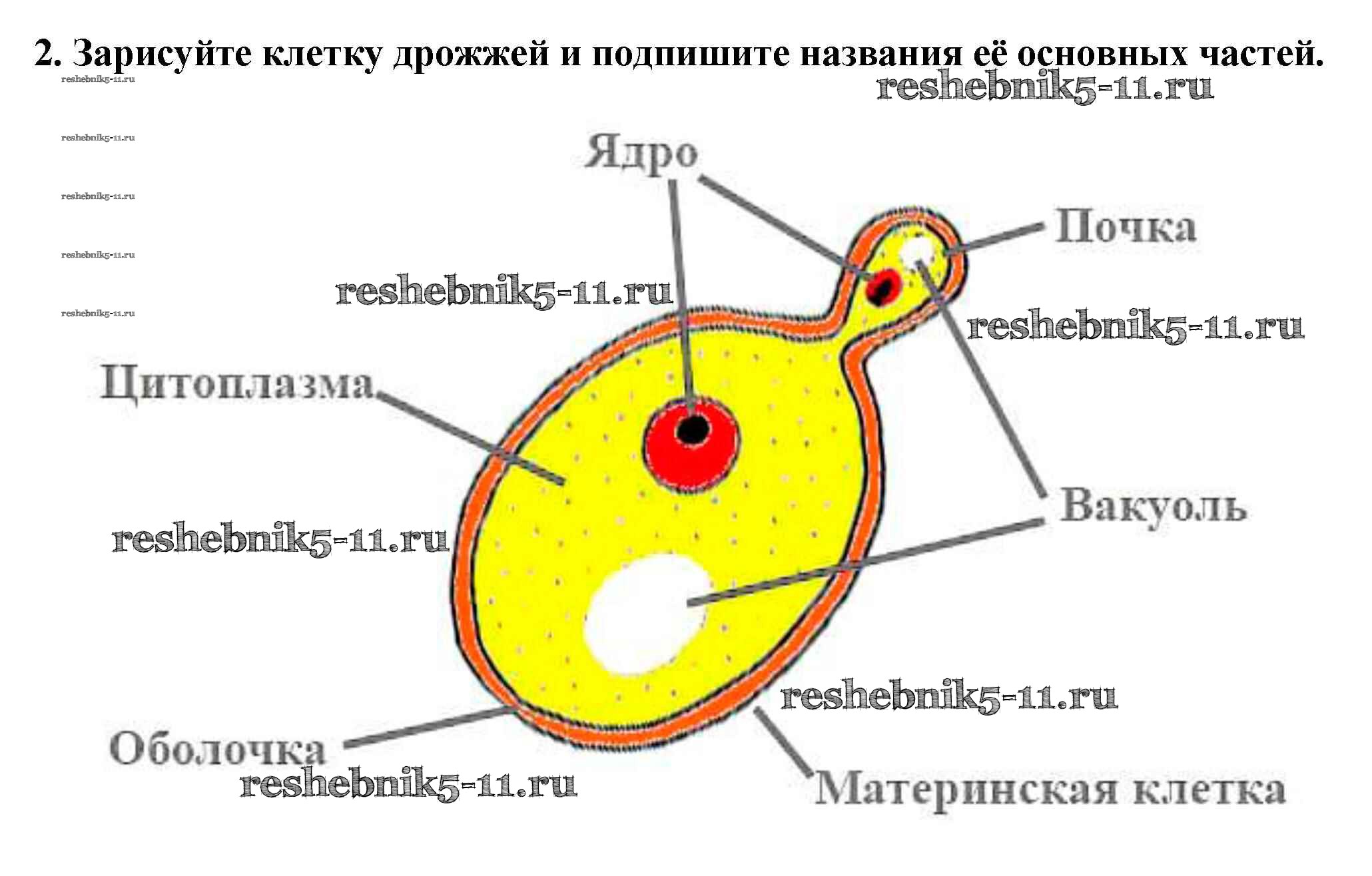 Готовая домашняя работа с ответами по Биологии за 5 класс Пасечник Учебник УМК Дрофа 2016 ФГОС - Строение дрожжей 2