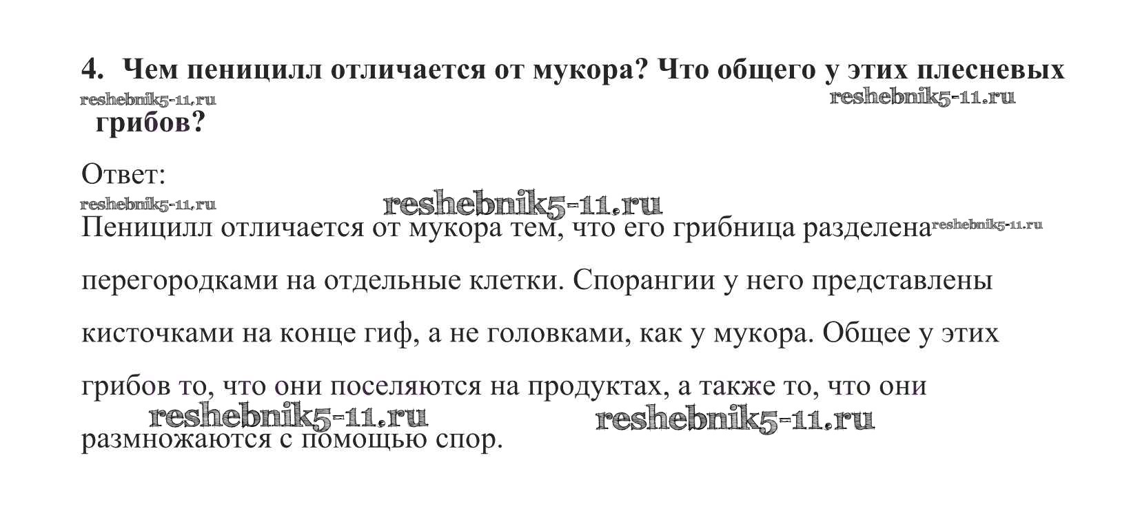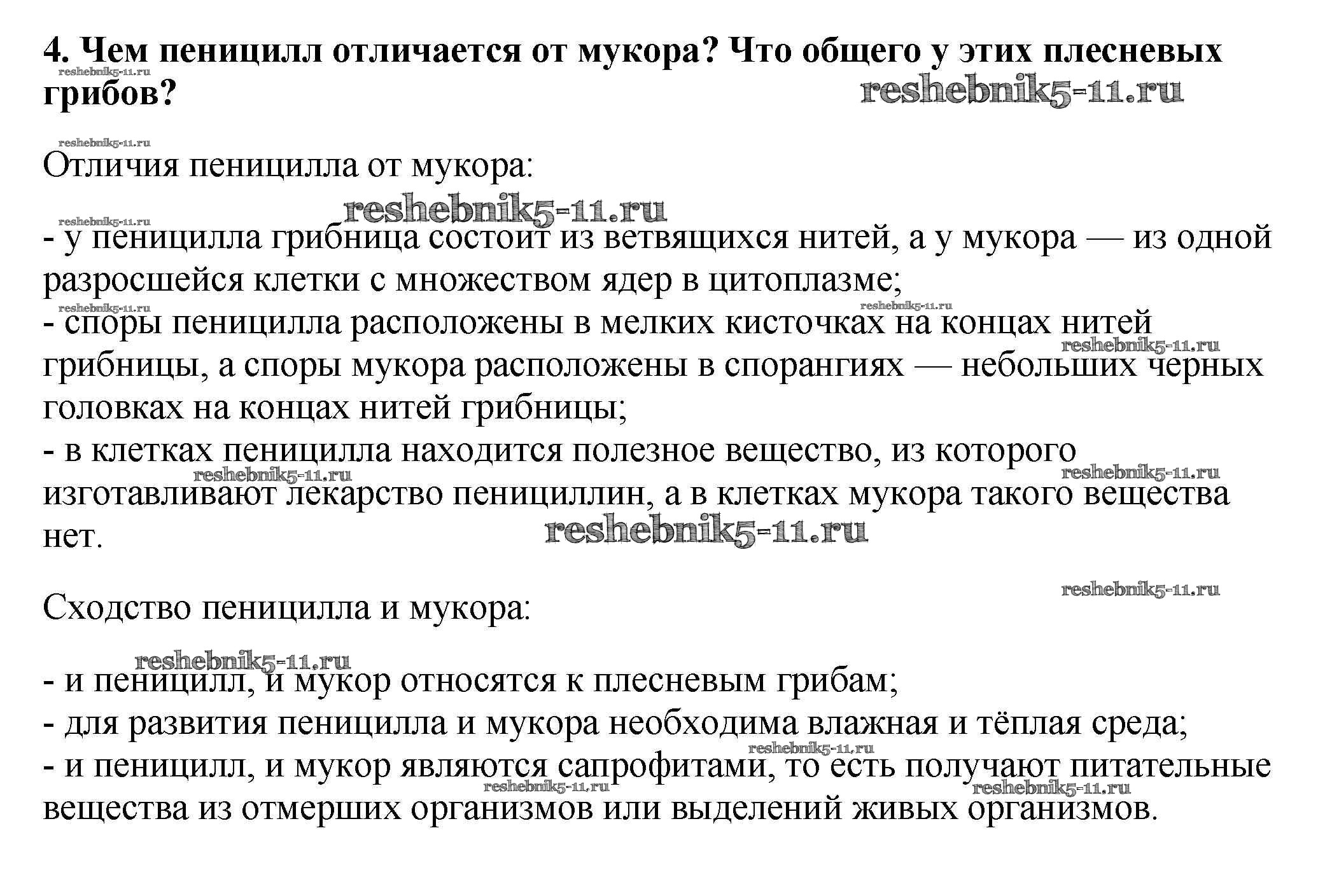 Готовая домашняя работа с ответами по Биологии за 5 класс Пасечник Учебник УМК Дрофа 2016 ФГОС - Вопросы в конце параграфа 4