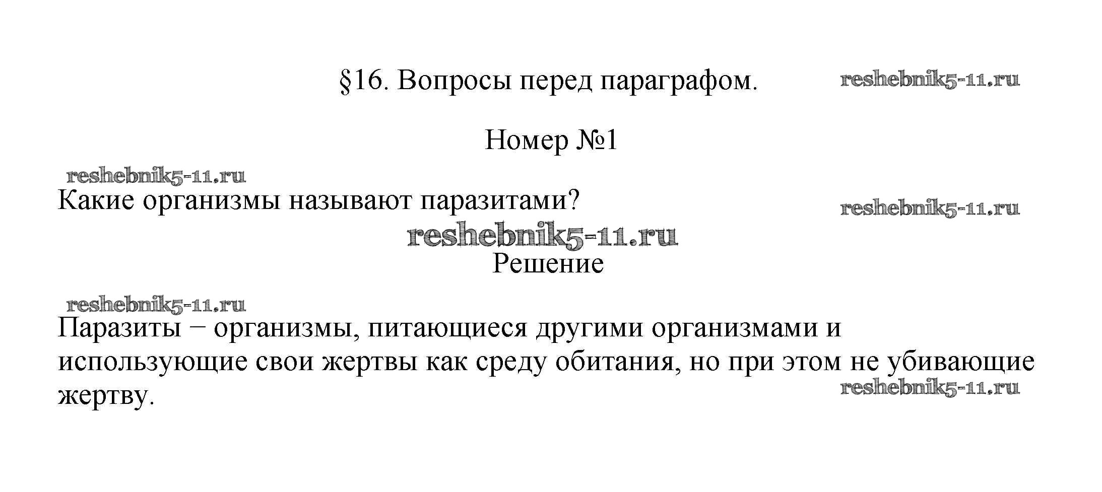 Готовая домашняя работа с ответами по Биологии за 5 класс Пасечник Учебник УМК Дрофа 2016 ФГОС - Вопросы в начале параграфа 1