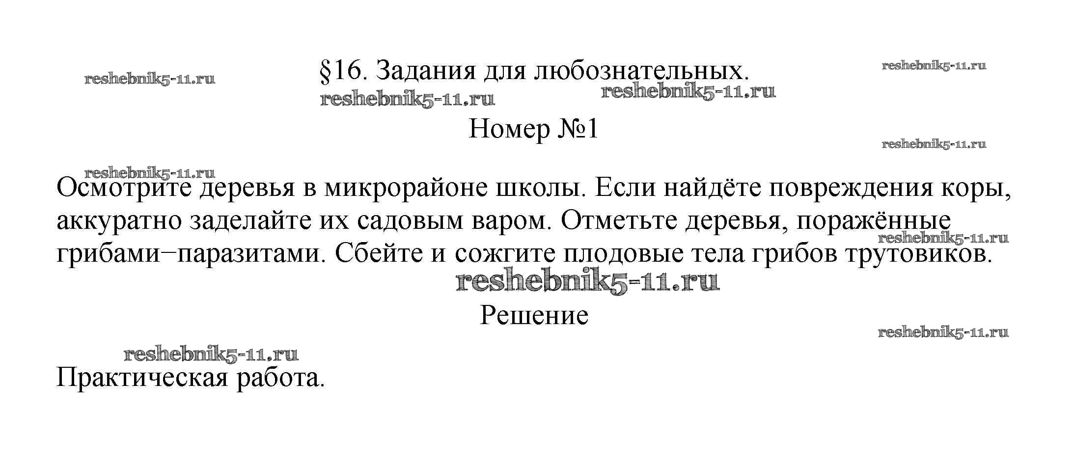 Готовая домашняя работа с ответами по Биологии за 5 класс Пасечник Учебник УМК Дрофа 2016 ФГОС - Задания для любознательных 1