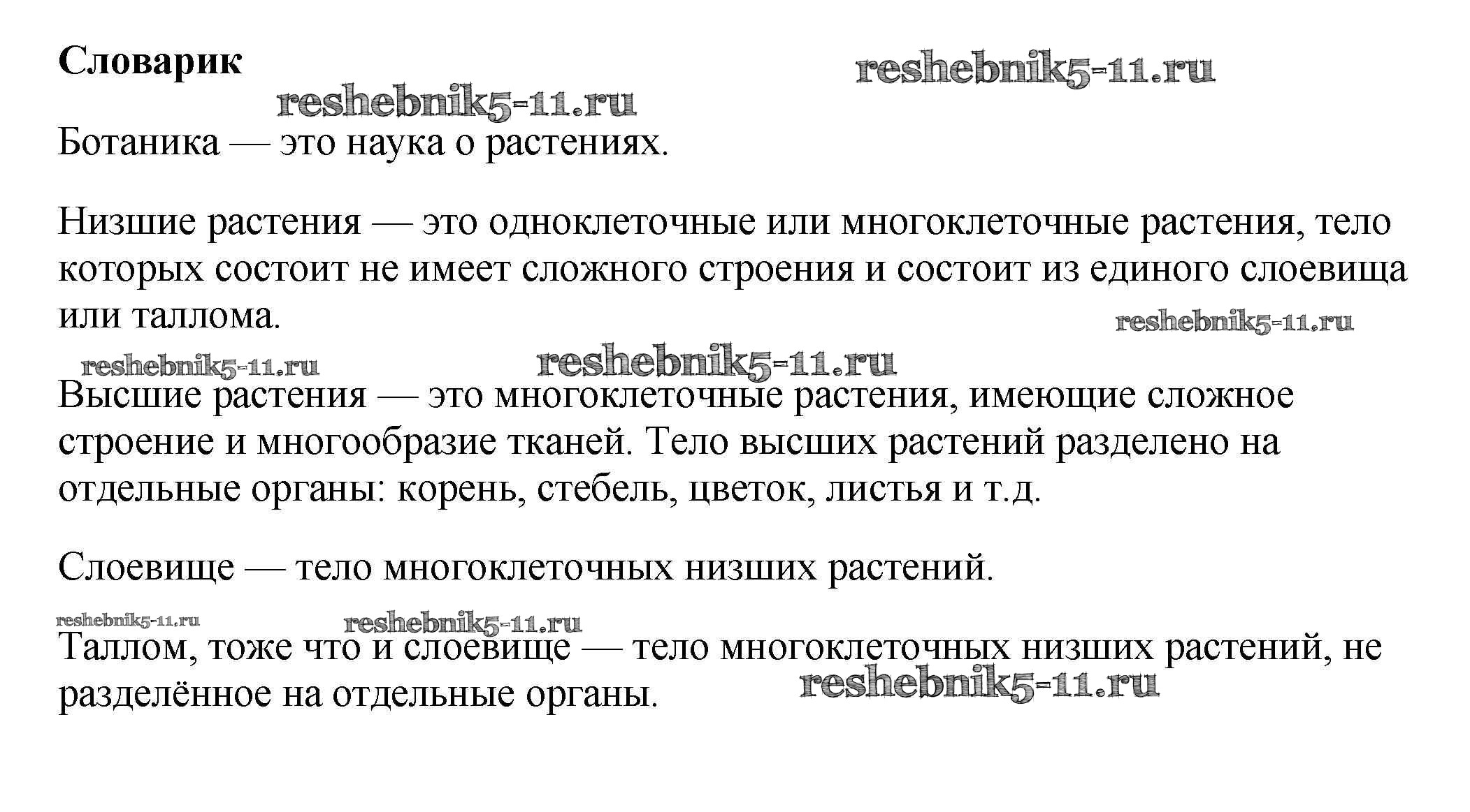 Готовая домашняя работа с ответами по Биологии за 5 класс Пасечник Учебник УМК Дрофа 2016 ФГОС - Словарик 1