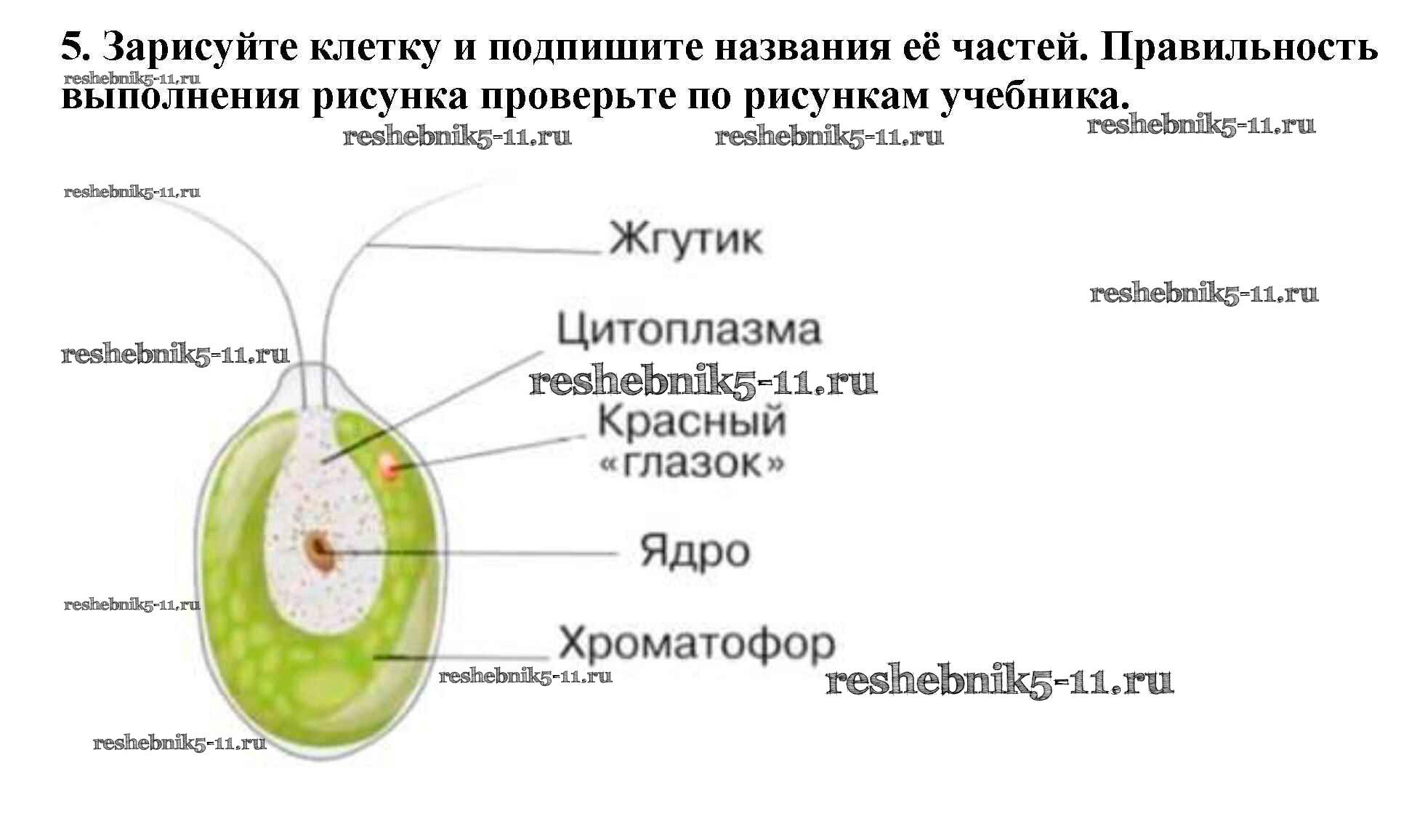 Решебник №3 / §18 / строение зелёных одноклеточных водорослей / 5