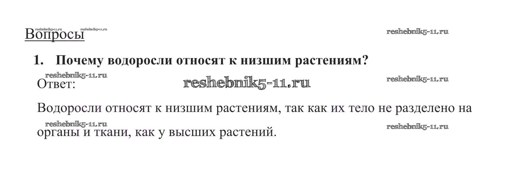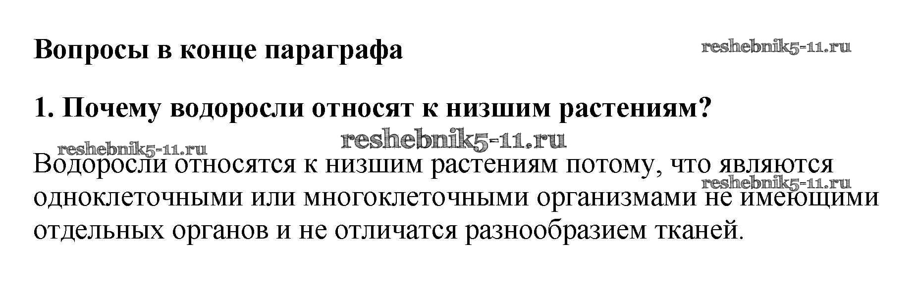 Биология за 5 класс Пасечник Учебник УМК Дрофа вопрос в конце параграфа 1