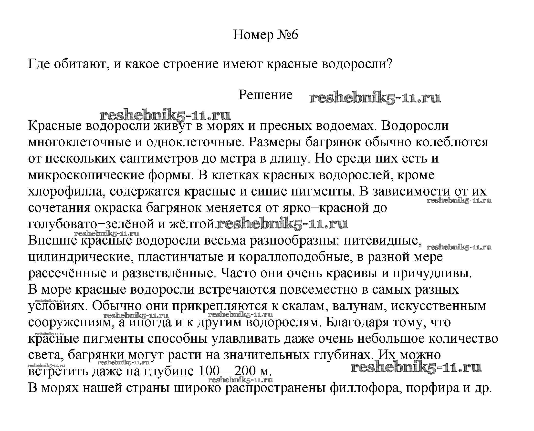 Готовая домашняя работа с ответами по Биологии за 5 класс Пасечник Учебник УМК Дрофа 2016 ФГОС - Вопросы в конце параграфа 6