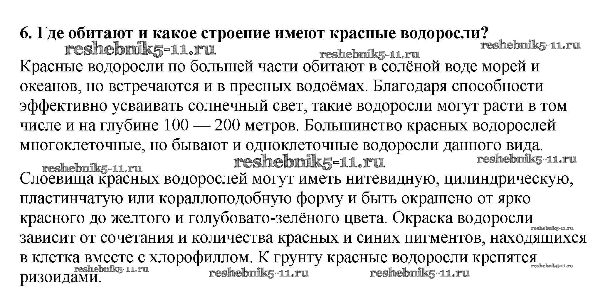 Биология за 5 класс Пасечник Учебник УМК Дрофа вопрос в конце параграфа 6