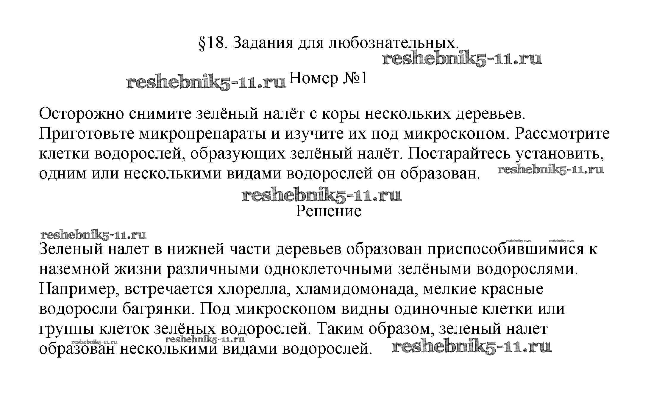 Готовая домашняя работа с ответами по Биологии за 5 класс Пасечник Учебник УМК Дрофа 2016 ФГОС - Задания для любознательных 1