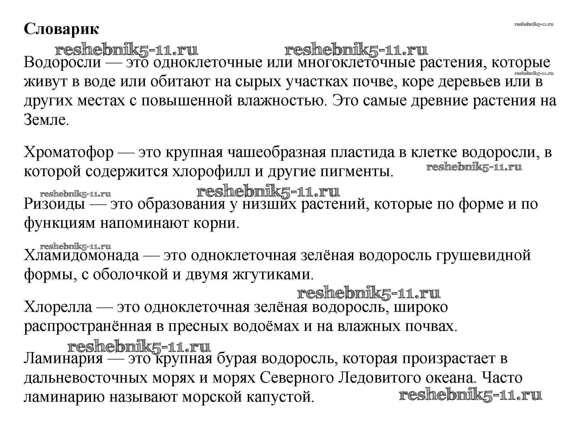 Готовая домашняя работа с ответами по Биологии за 5 класс Пасечник Учебник УМК Дрофа 2016 ФГОС - Словарик 1