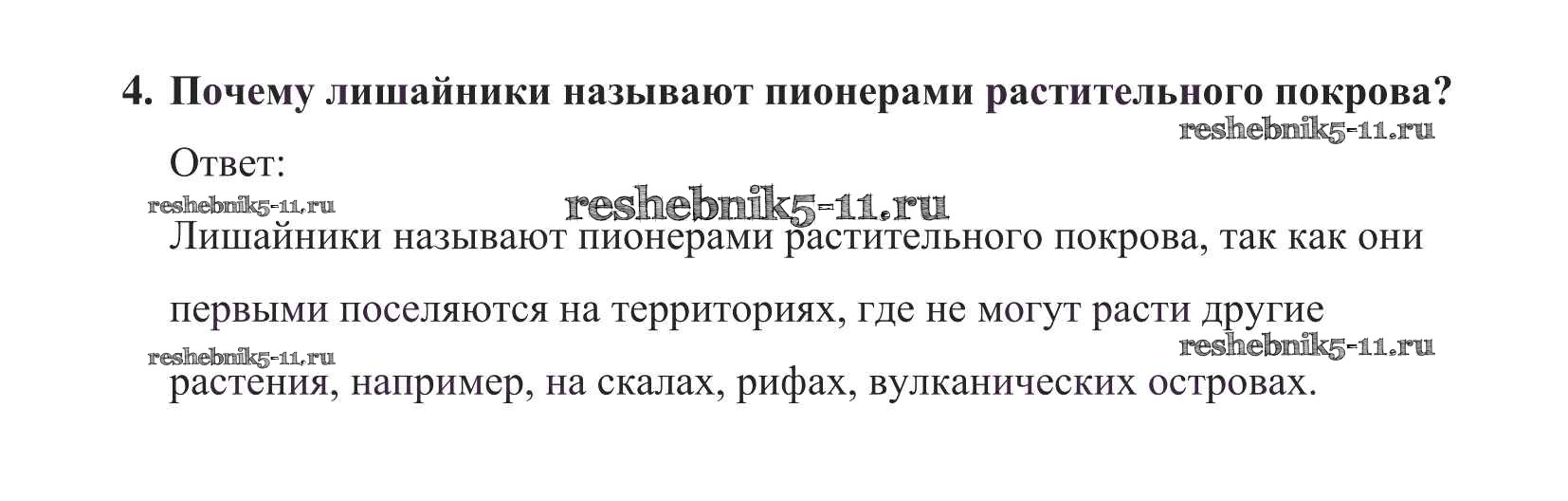Биология за 5 класс Пасечник Учебник УМК Дрофа вопрос в конце параграфа 4