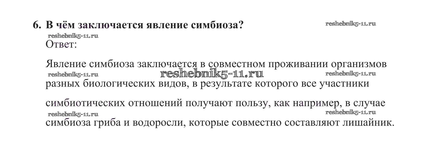 Готовая домашняя работа с ответами по Биологии за 5 класс Пасечник Учебник УМК Дрофа 2016 ФГОС - Вопросы в конце параграфа 6