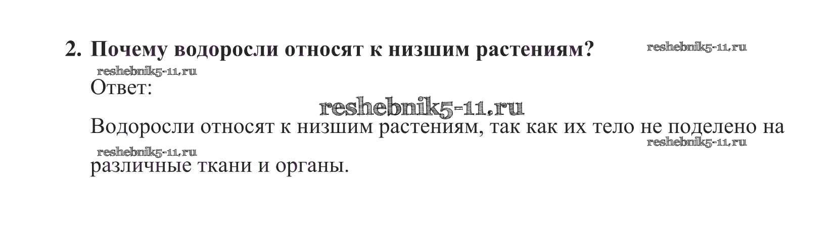 Готовая домашняя работа с ответами по Биологии за 5 класс Пасечник Учебник УМК Дрофа 2016 ФГОС - Вопросы в начале параграфа 2