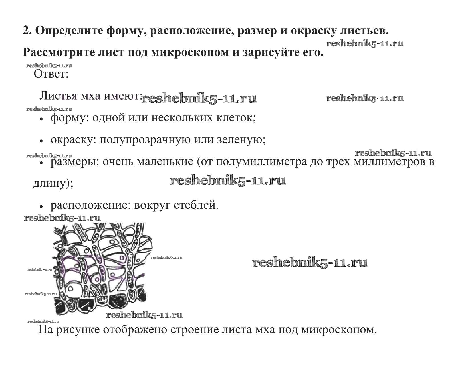 Готовая домашняя работа с ответами по Биологии за 5 класс Пасечник Учебник УМК Дрофа 2016 ФГОС - Строение мха 2
