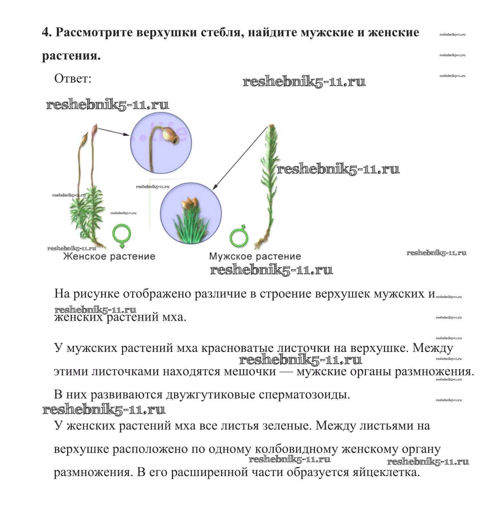 Готовая домашняя работа с ответами по Биологии за 5 класс Пасечник Учебник УМК Дрофа 2016 ФГОС - Строение мха 4