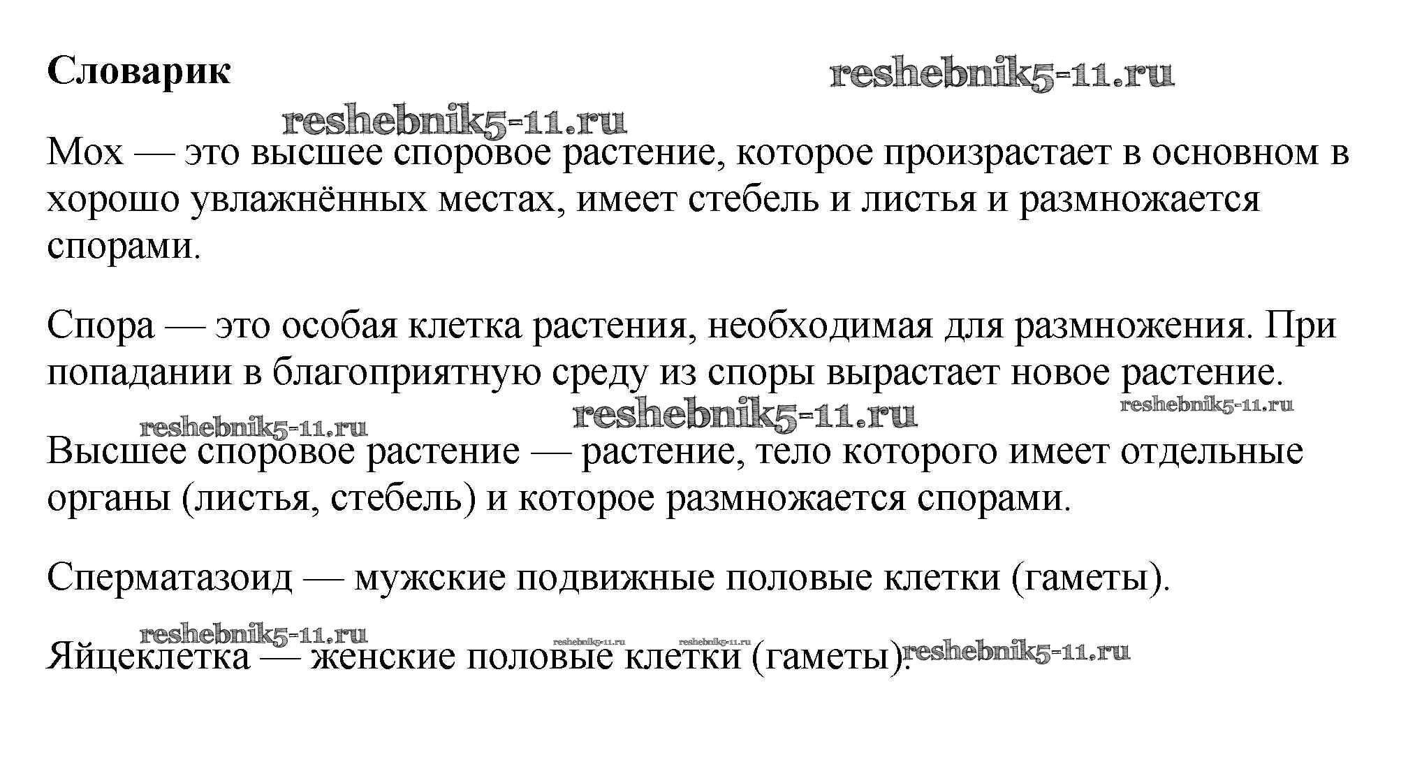 Готовая домашняя работа с ответами по Биологии за 5 класс Пасечник Учебник УМК Дрофа 2016 ФГОС - Словарик 1