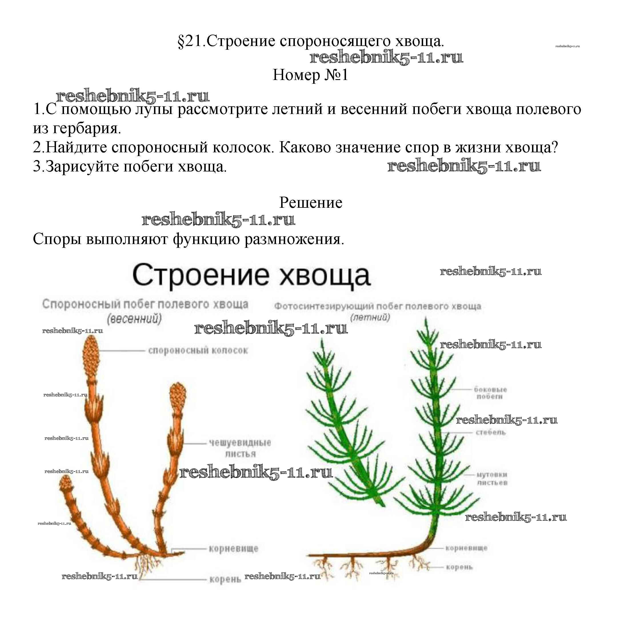 Решебник №1 / §21 / строение спороносящего хвоща / 1