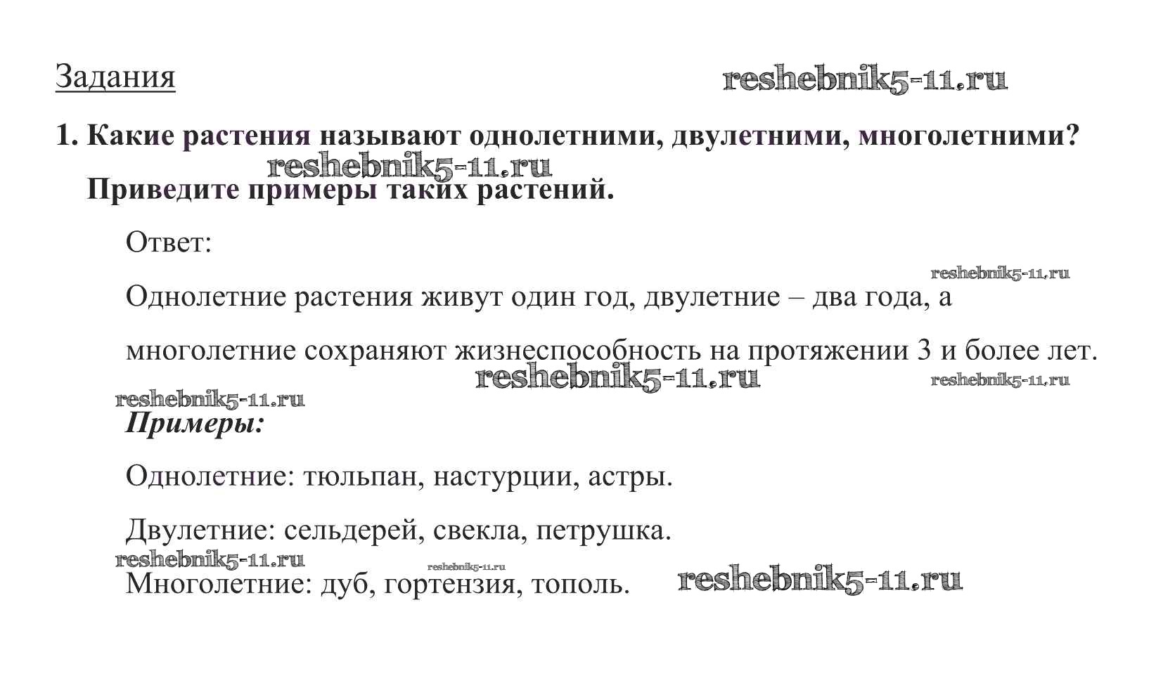 Готовая домашняя работа с ответами по Биологии за 5 класс Пасечник Учебник УМК Дрофа 2016 ФГОС - Задания 1