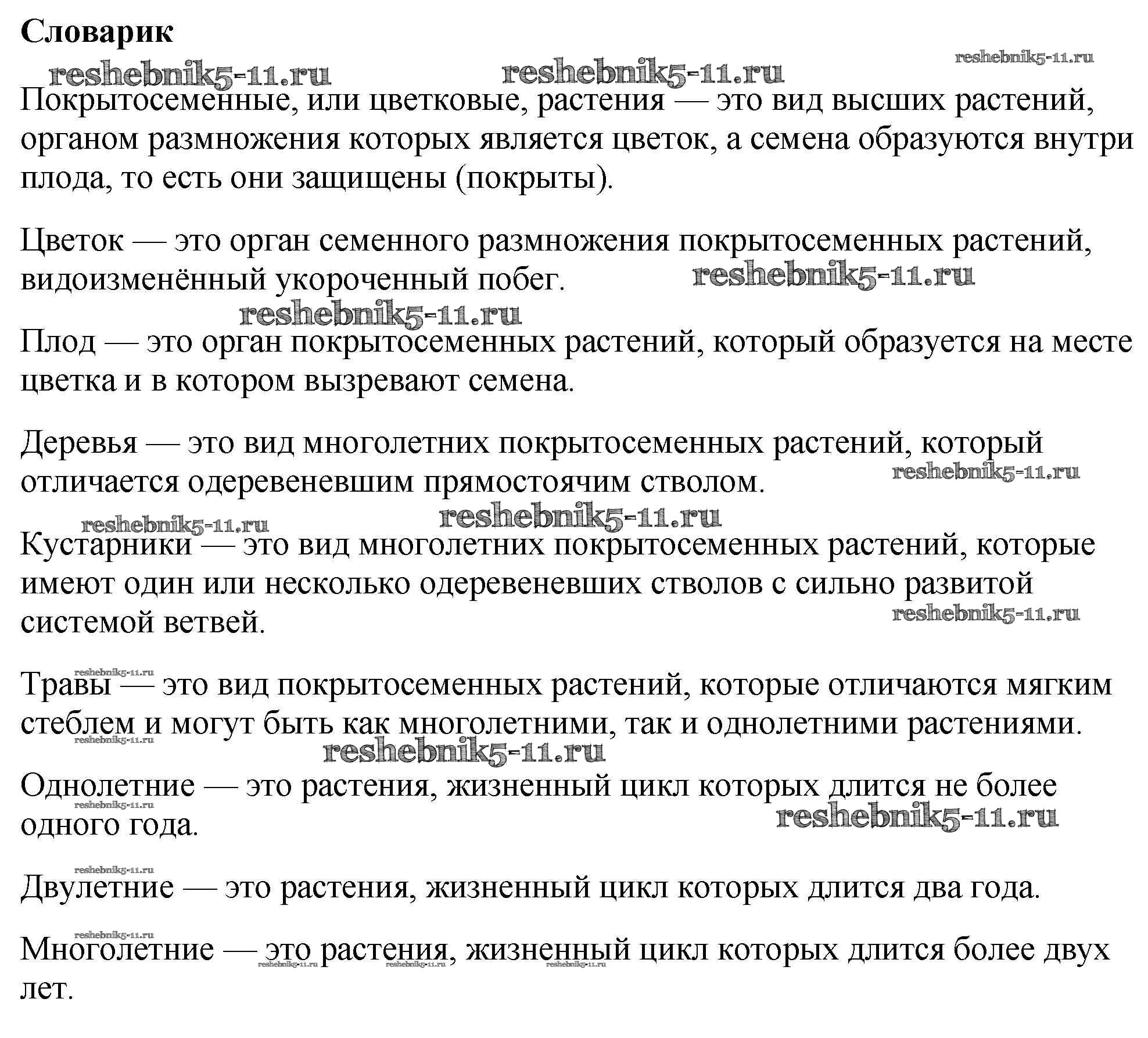 Готовая домашняя работа с ответами по Биологии за 5 класс Пасечник Учебник УМК Дрофа 2016 ФГОС - Словарик 1