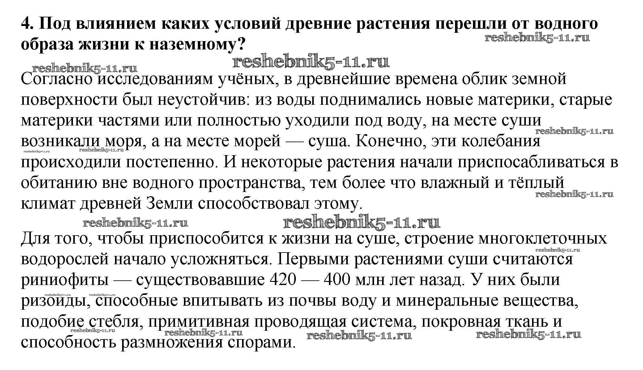 Готовая домашняя работа с ответами по Биологии за 5 класс Пасечник Учебник УМК Дрофа 2016 ФГОС - Вопросы в конце параграфа 4