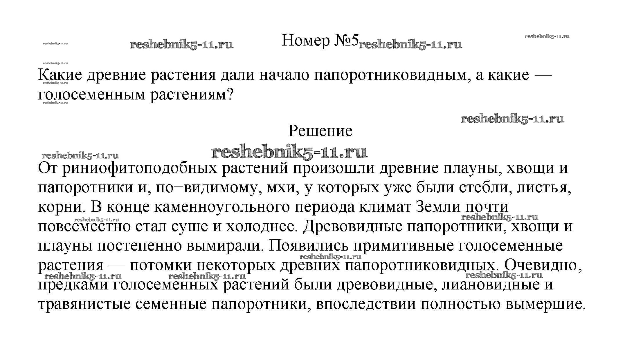 Биология за 5 класс Пасечник Учебник УМК Дрофа вопрос в конце параграфа 5