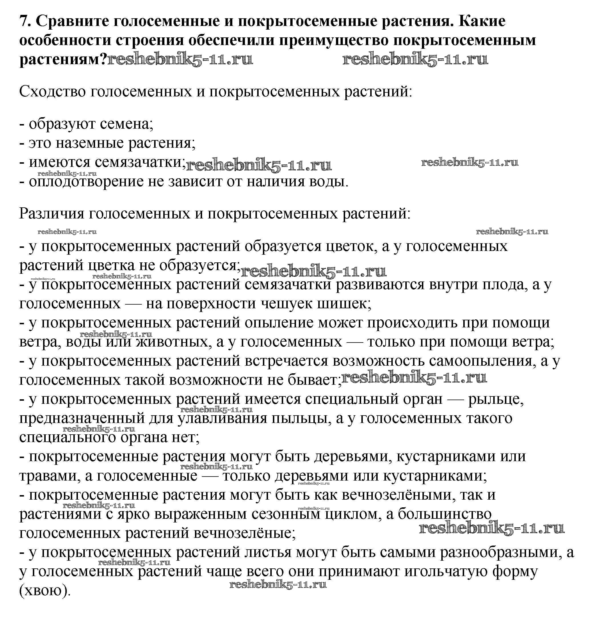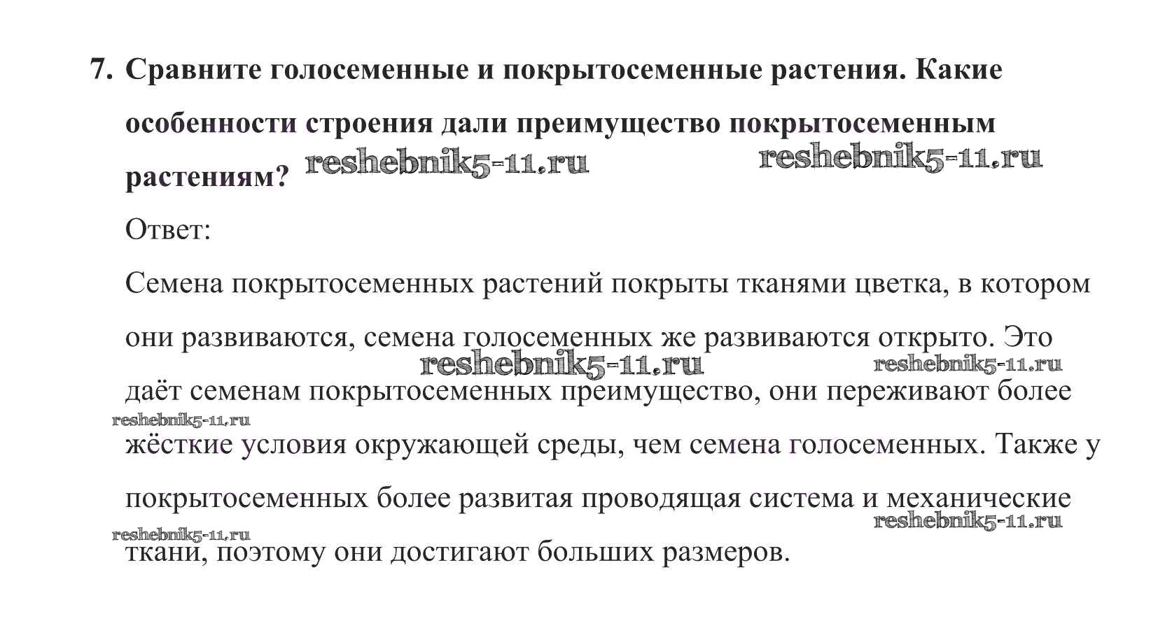 Готовая домашняя работа с ответами по Биологии за 5 класс Пасечник Учебник УМК Дрофа 2016 ФГОС - Вопросы в конце параграфа 7