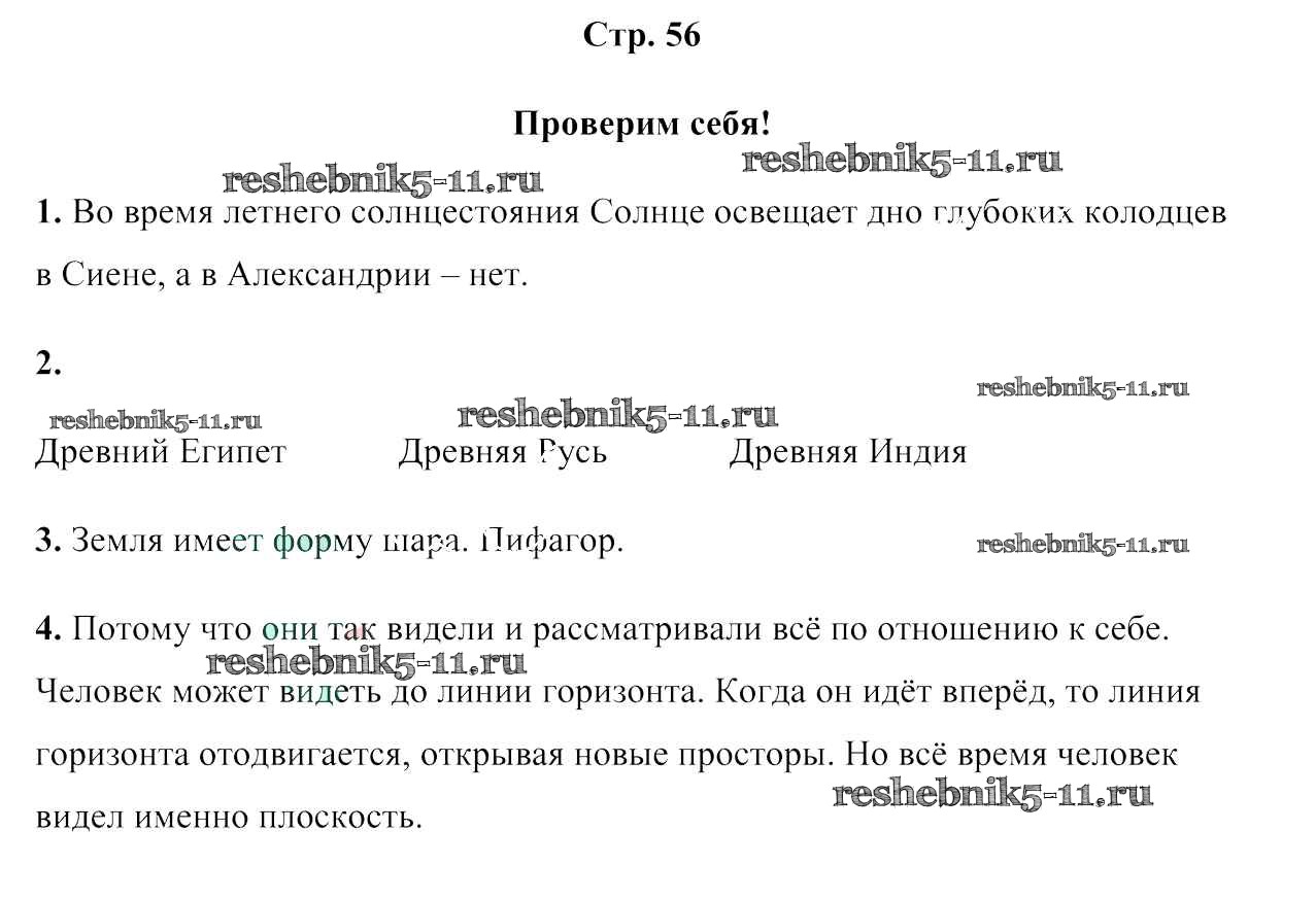 Готовая домашняя работа с ответами по Человеку и миру за 5 класс Лопух, Сарычева, Шкель Рабочая тетрадь Аверсэв 2015 - Страницы тетради 56