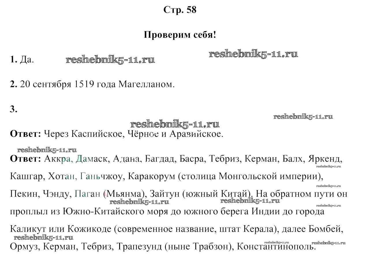 Готовая домашняя работа с ответами по Человеку и миру за 5 класс Лопух, Сарычева, Шкель Рабочая тетрадь Аверсэв 2015 - Страницы тетради 58