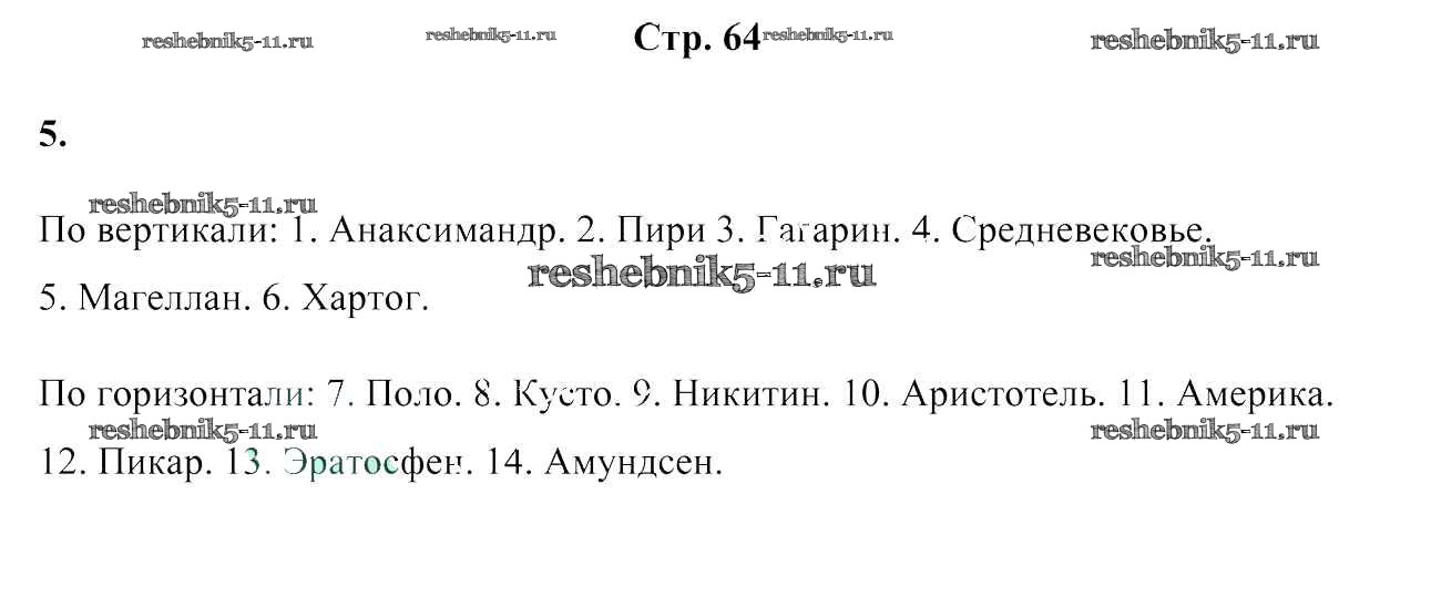 Готовая домашняя работа с ответами по Человеку и миру за 5 класс Лопух, Сарычева, Шкель Рабочая тетрадь Аверсэв 2015 - Страницы тетради 64
