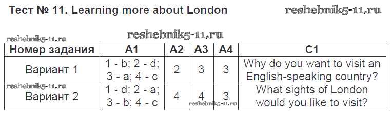 Готовая домашняя работа с ответами по Английскому языку за 5 класс Лысакова, Сахаров, Сухоросова Контрольно-измерительные материалы (КИМ) ВАКО 2017 ФГОС - Тесты 11