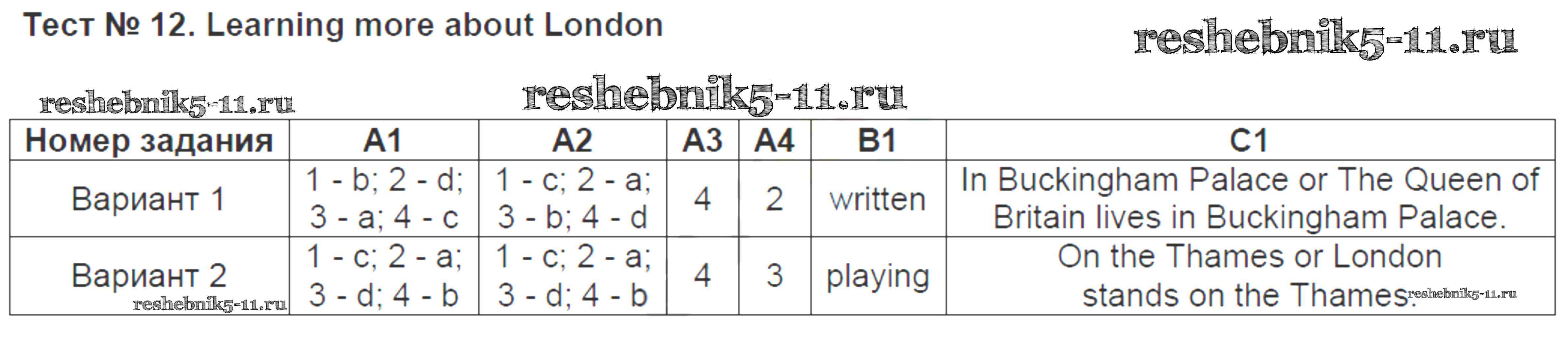 Готовая домашняя работа с ответами по Английскому языку за 5 класс Лысакова, Сахаров, Сухоросова Контрольно-измерительные материалы (КИМ) ВАКО 2017 ФГОС - Тесты 12