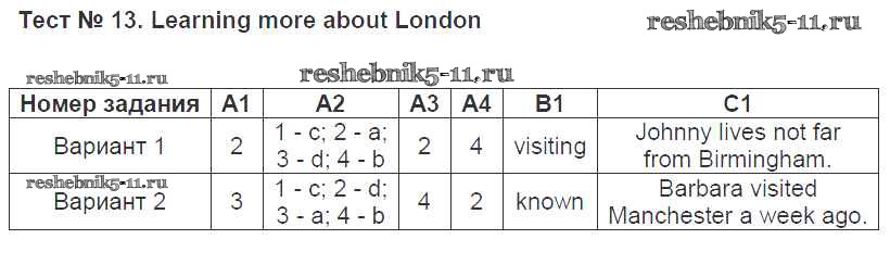 Готовая домашняя работа с ответами по Английскому языку за 5 класс Лысакова, Сахаров, Сухоросова Контрольно-измерительные материалы (КИМ) ВАКО 2017 ФГОС - Тесты 13