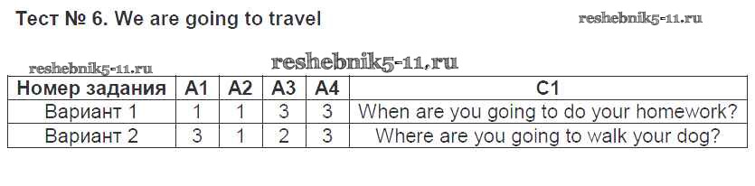 Готовая домашняя работа с ответами по Английскому языку за 5 класс Лысакова, Сахаров, Сухоросова Контрольно-измерительные материалы (КИМ) ВАКО 2017 ФГОС - Тесты 6