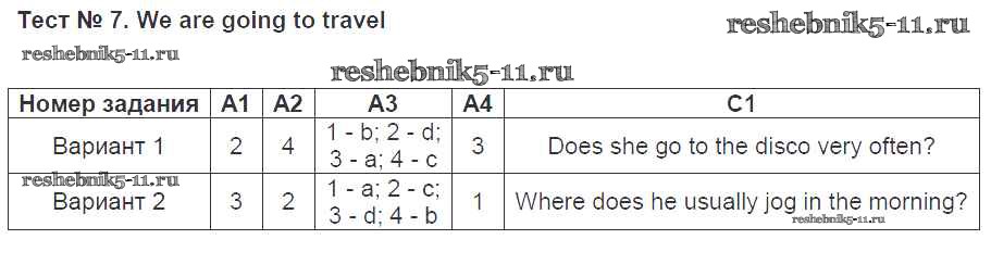 Готовая домашняя работа с ответами по Английскому языку за 5 класс Лысакова, Сахаров, Сухоросова Контрольно-измерительные материалы (КИМ) ВАКО 2017 ФГОС - Тесты 7