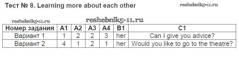 Готовая домашняя работа с ответами по Английскому языку за 5 класс Лысакова, Сахаров, Сухоросова Контрольно-измерительные материалы (КИМ) ВАКО 2017 ФГОС - Тесты 8