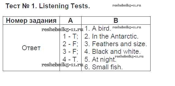 Готовая домашняя работа с ответами по Английскому языку за 5 класс Лысакова, Сахаров, Сухоросова Контрольно-измерительные материалы (КИМ) ВАКО 2017 ФГОС - Listening Tests 1