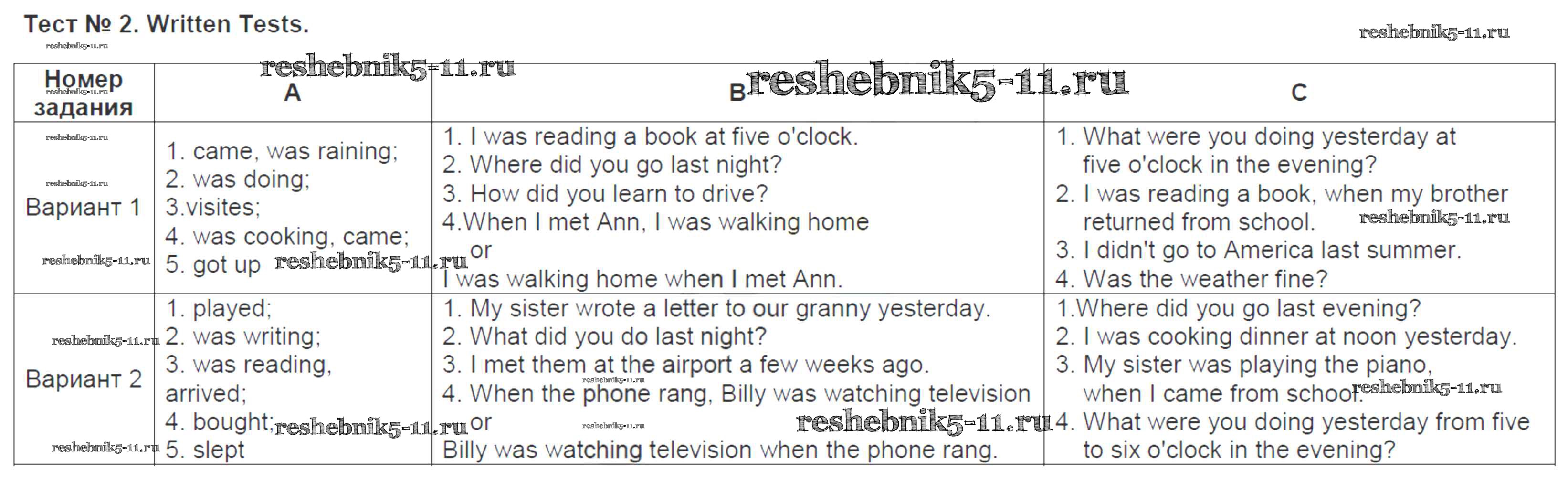 Готовая домашняя работа с ответами по Английскому языку за 5 класс Лысакова, Сахаров, Сухоросова Контрольно-измерительные материалы (КИМ) ВАКО 2017 ФГОС - Written Tests 2