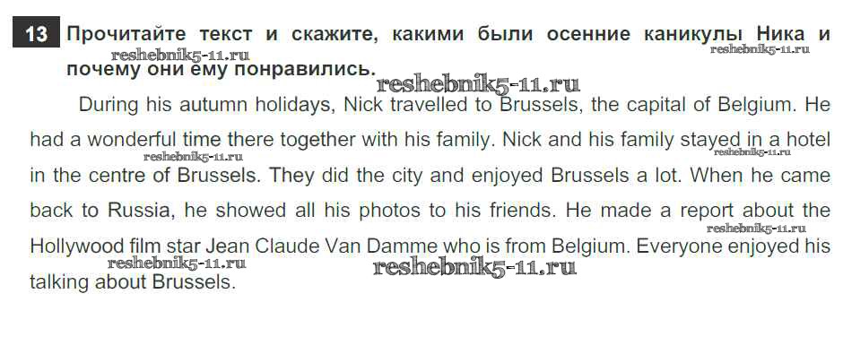 Готовая домашняя работа с ответами по Английскому языку за 5 класс Афанасьева, Михеева, Баранова Рабочая тетрадь Rainbow Дрофа 2017 ФГОС - Unit One. Holidays Are Over 13