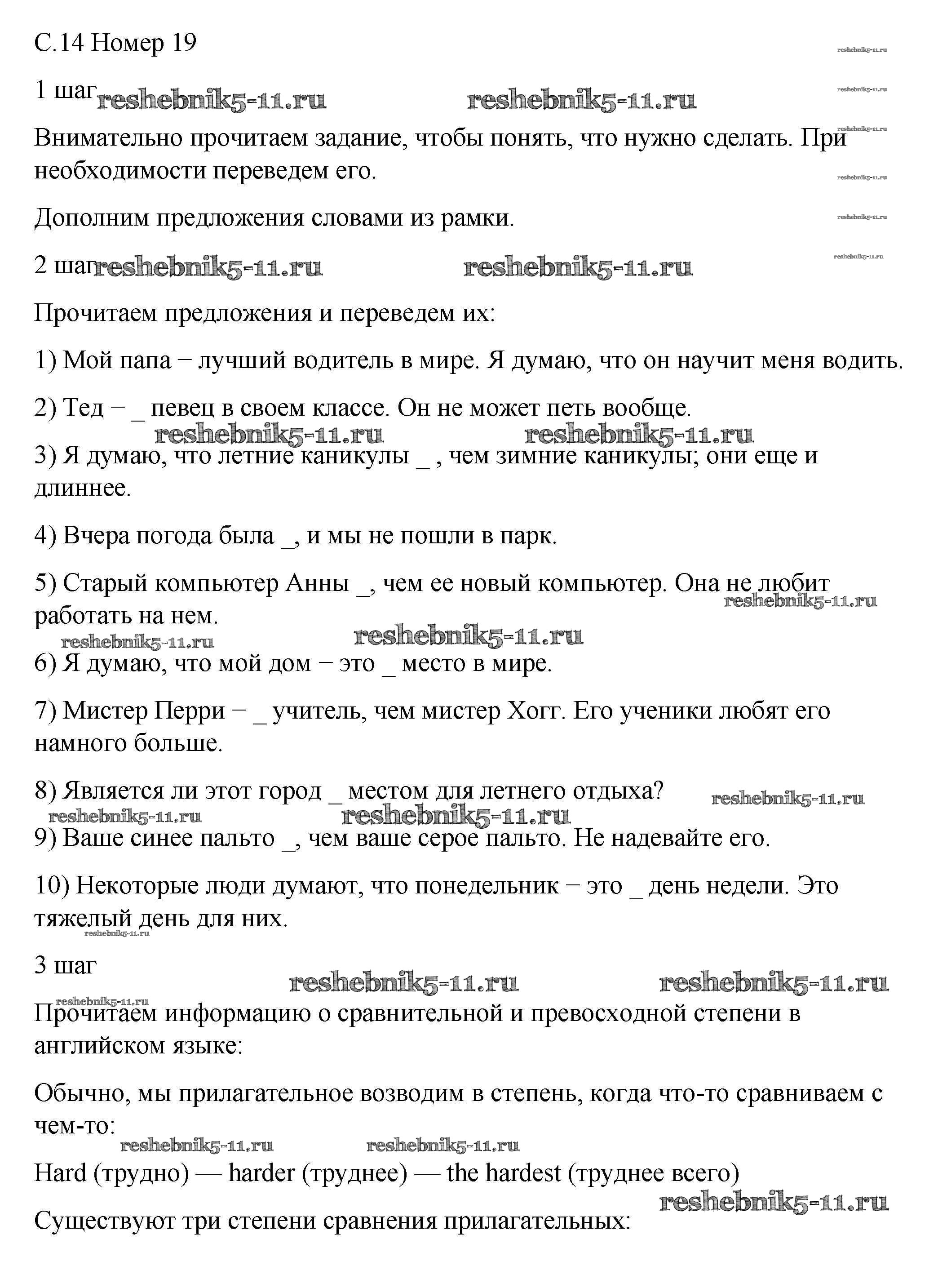 Готовая домашняя работа с ответами по Английскому языку за 5 класс Афанасьева, Михеева, Баранова Рабочая тетрадь Rainbow Дрофа 2017 ФГОС - Unit One. Holidays Are Over 19