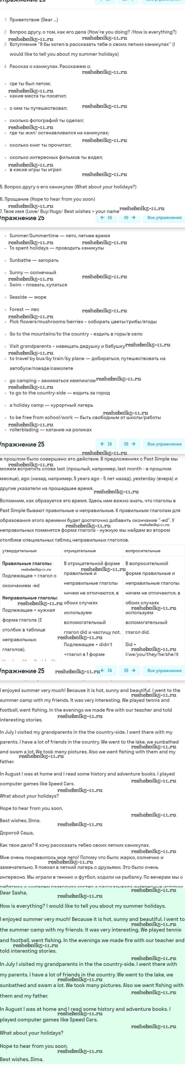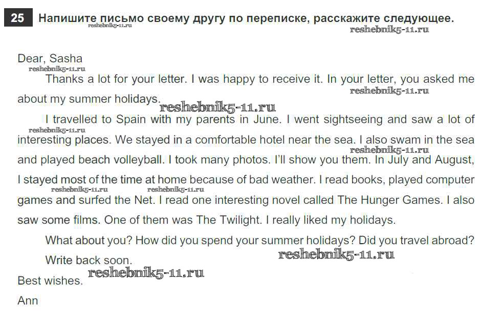 Готовая домашняя работа с ответами по Английскому языку за 5 класс Афанасьева, Михеева, Баранова Рабочая тетрадь Rainbow Дрофа 2017 ФГОС - Unit One. Holidays Are Over 25