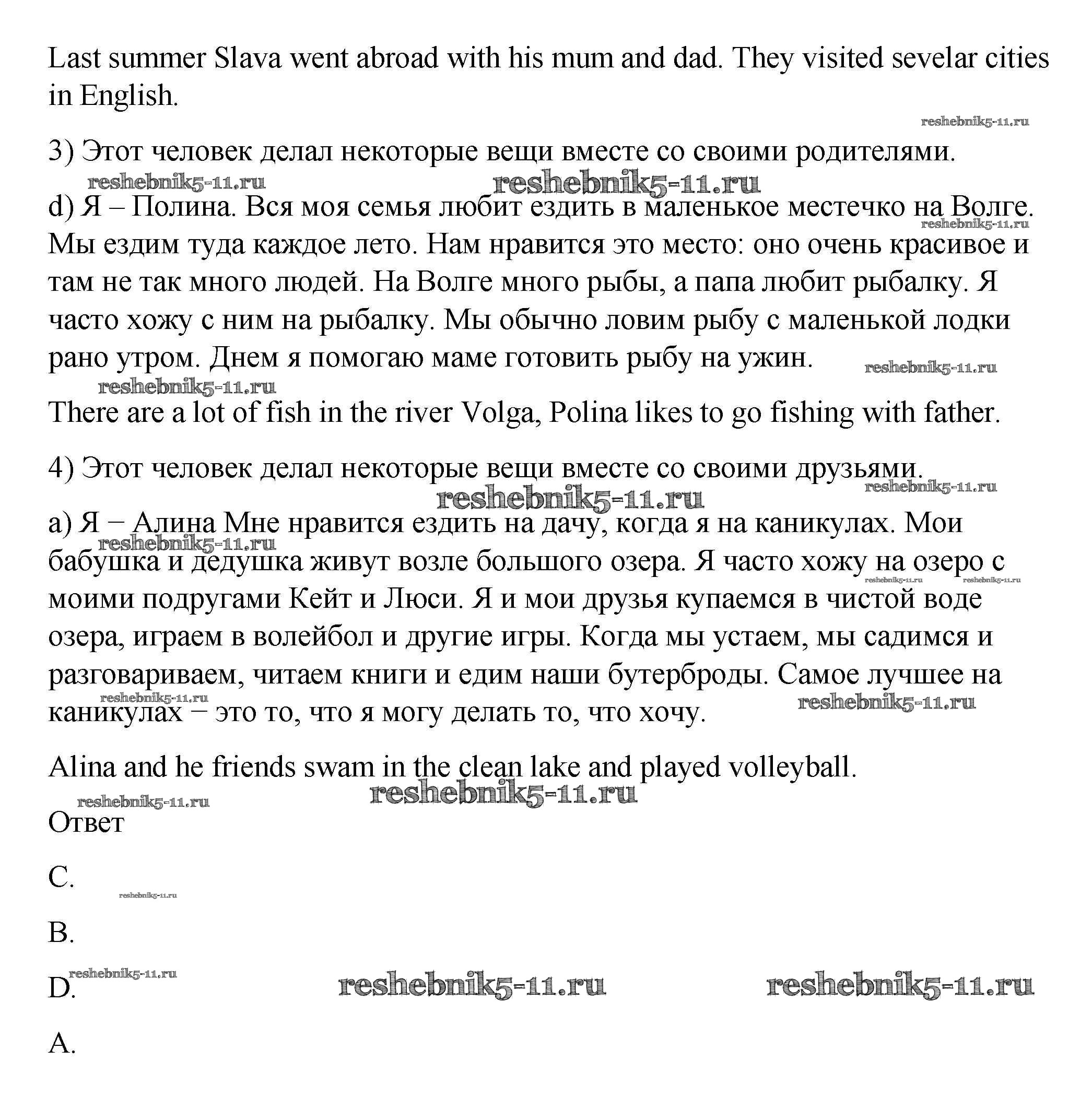 Готовая домашняя работа с ответами по Английскому языку за 5 класс Афанасьева, Михеева, Баранова Рабочая тетрадь Rainbow Дрофа 2017 ФГОС - Unit One. Holidays Are Over 3