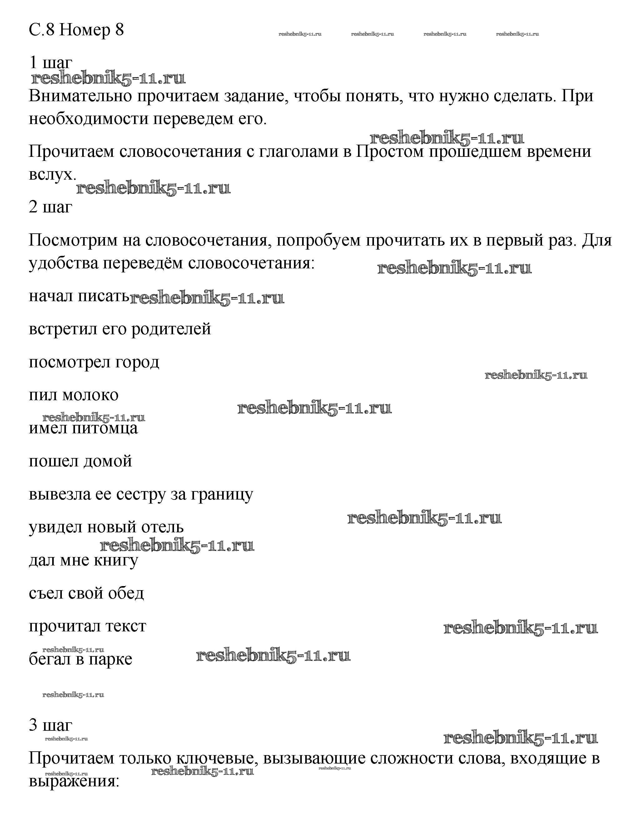 Готовая домашняя работа с ответами по Английскому языку за 5 класс Афанасьева, Михеева, Баранова Рабочая тетрадь Rainbow Дрофа 2017 ФГОС - Unit One. Holidays Are Over 8