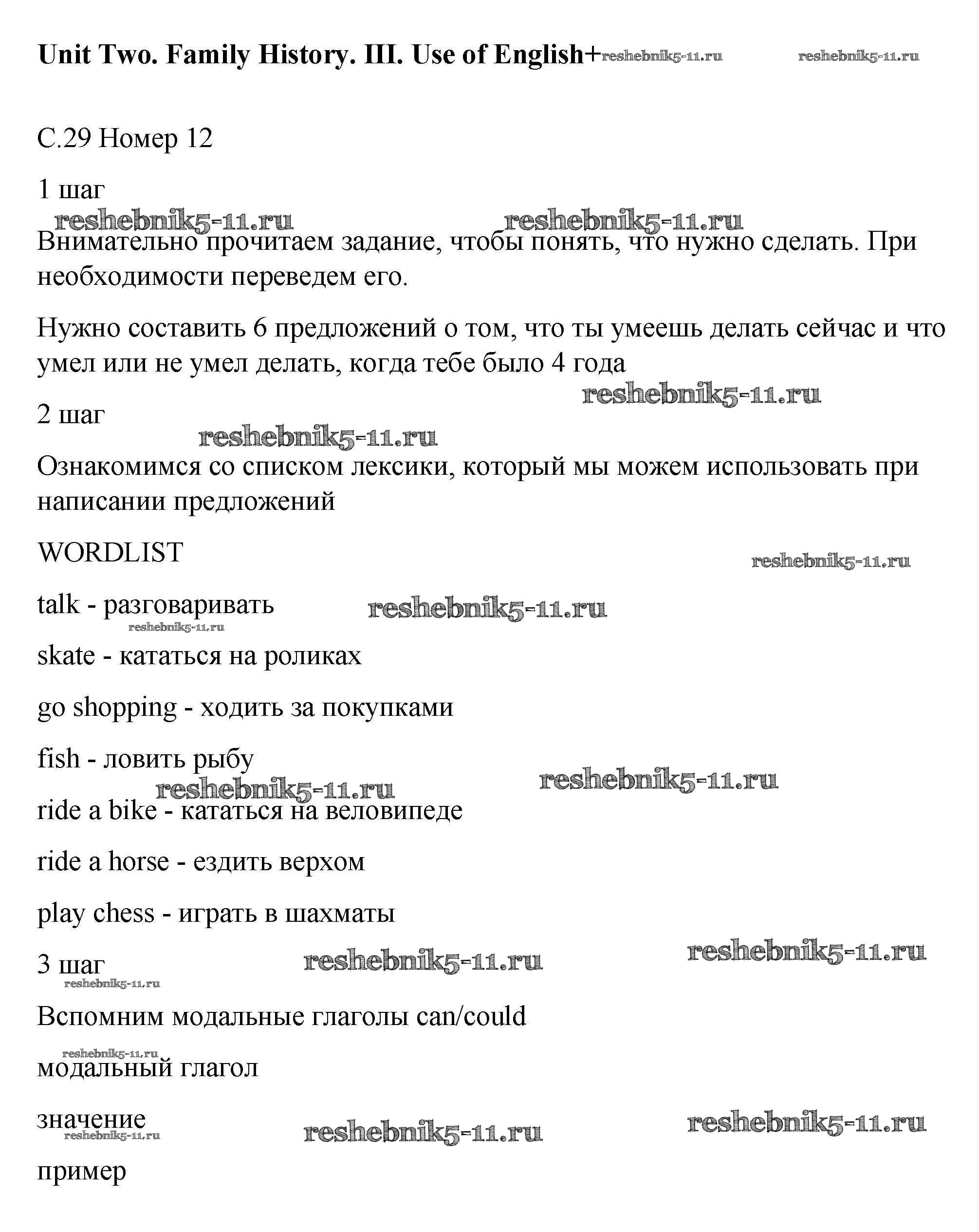 Готовая домашняя работа с ответами по Английскому языку за 5 класс Афанасьева, Михеева, Баранова Рабочая тетрадь Rainbow Дрофа 2017 ФГОС - Unit Two. Family History 12