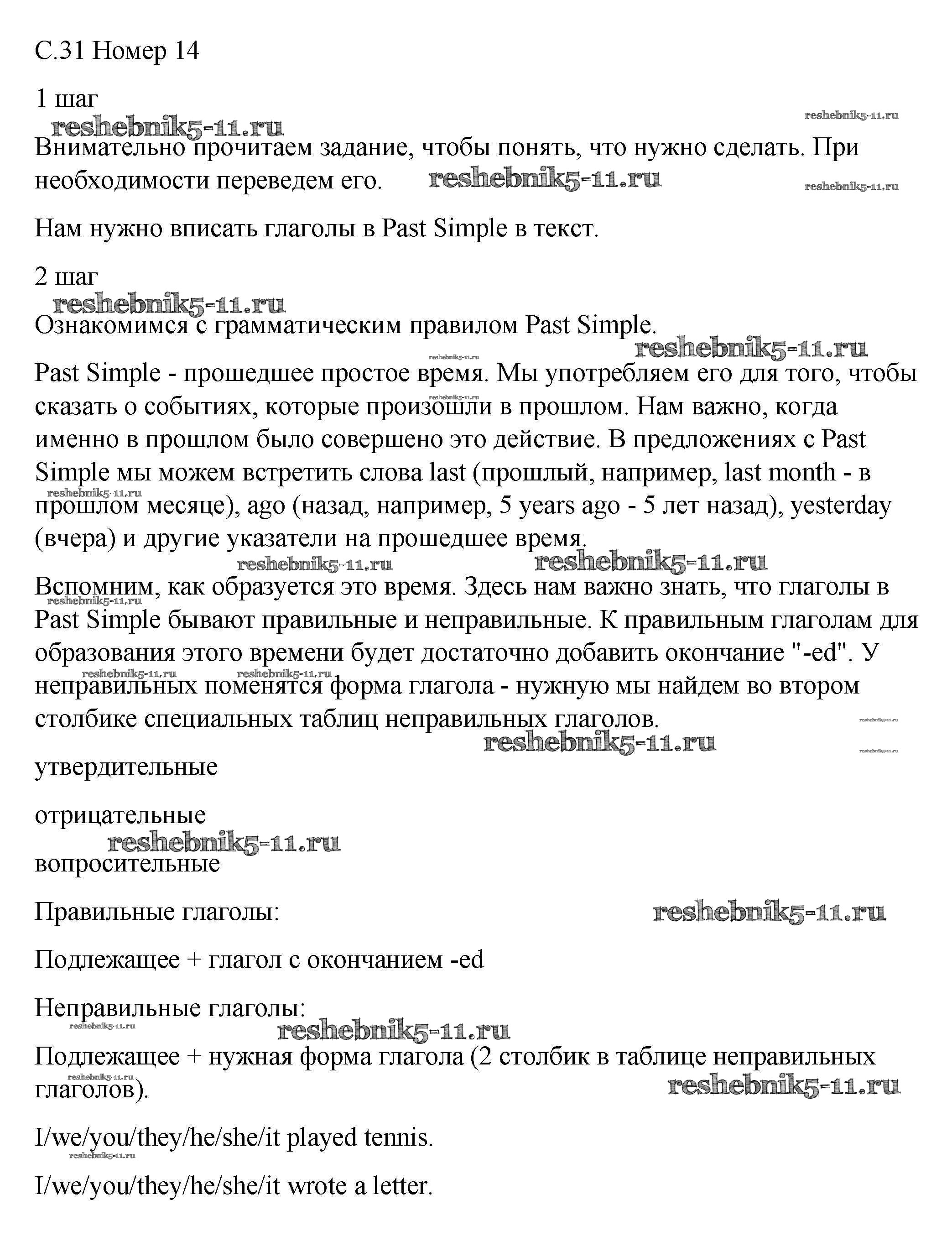 Английский язык за 5 класс Афанасьева Рабочая тетрадь Rainbow Дрофа unit 2 14