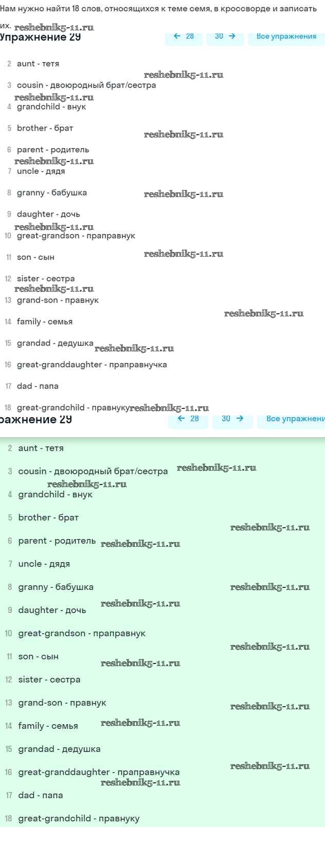 Готовая домашняя работа с ответами по Английскому языку за 5 класс Афанасьева, Михеева, Баранова Рабочая тетрадь Rainbow Дрофа 2017 ФГОС - Unit Two. Family History 29