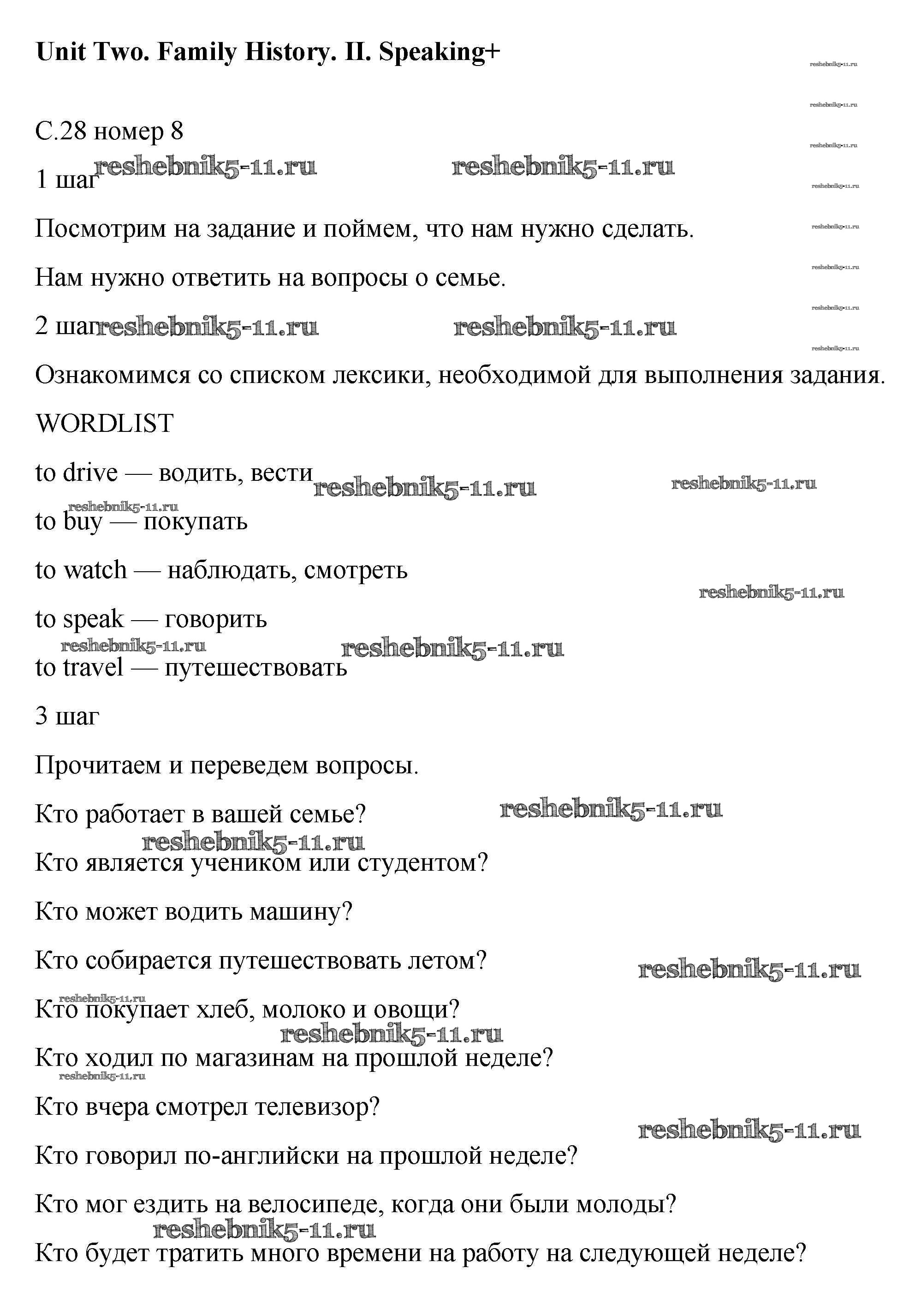 Готовая домашняя работа с ответами по Английскому языку за 5 класс Афанасьева, Михеева, Баранова Рабочая тетрадь Rainbow Дрофа 2017 ФГОС - Unit Two. Family History 8